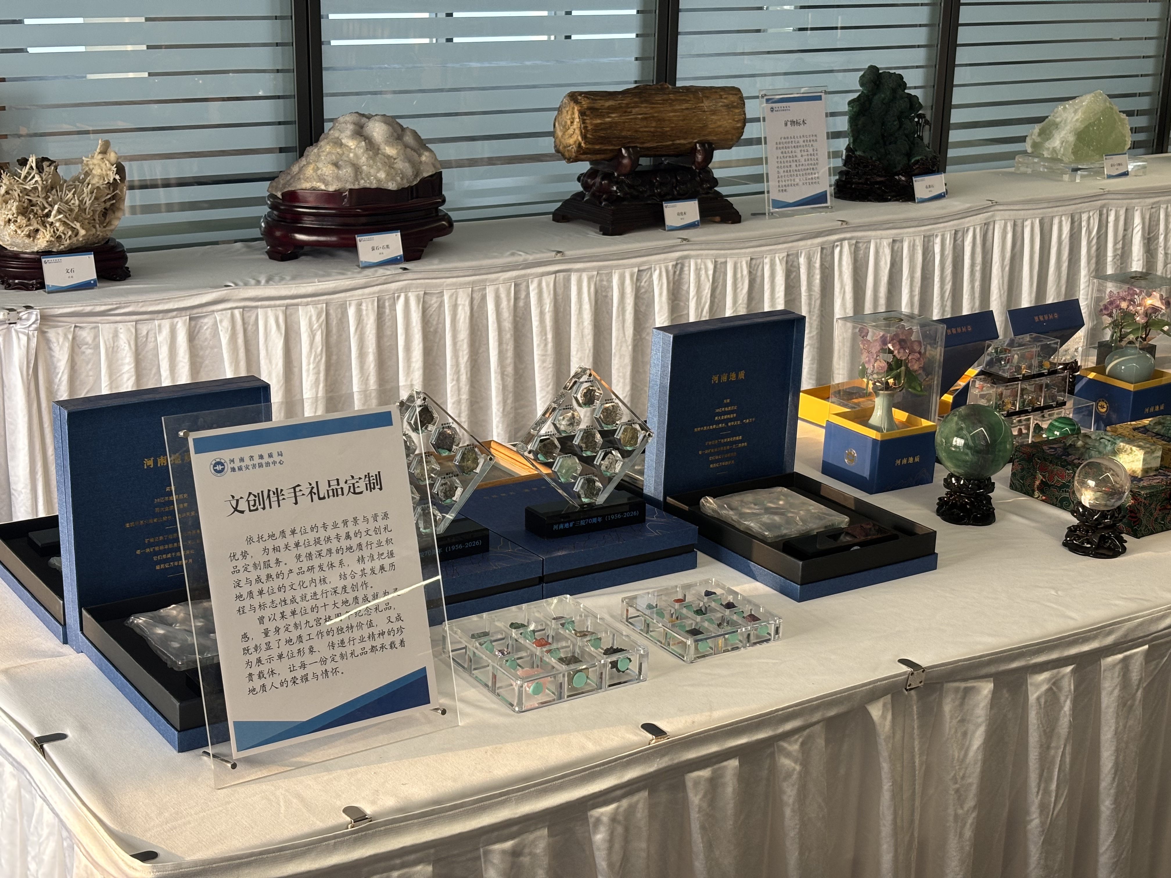 展台集中展示了天然矿物标本、地质文创产品,并推出定制文创礼品服务,展现了河南地质工作的专业特色与文化内涵,有效搭建起联盟成员单位之间的文化交流平台,也提升了中心的影响力和美誉度。