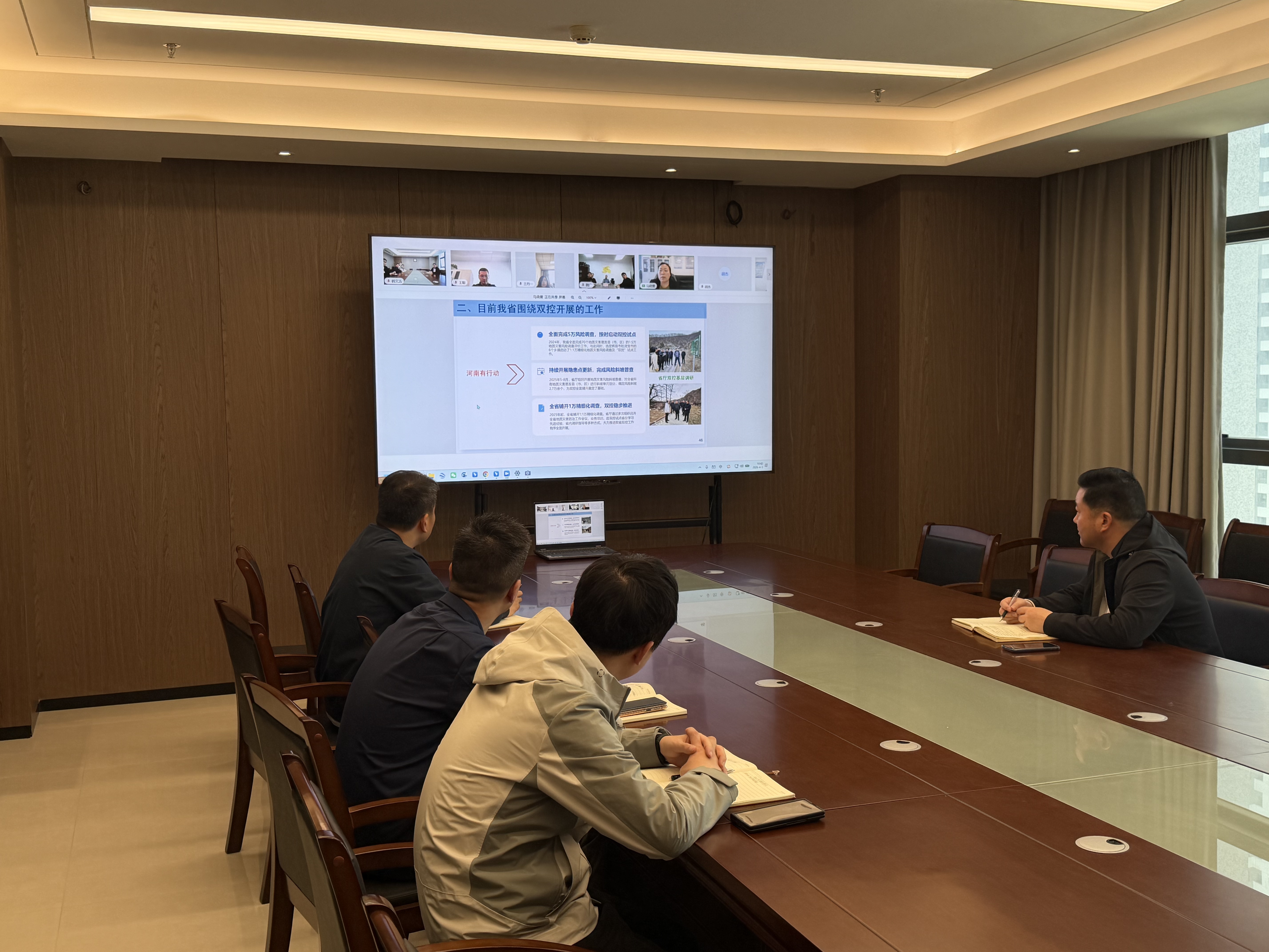 会议传达学习了省自然资源厅2026年度全省汛前地质灾害防治视频培训会议精神,明确汛期防控重点。与会人员围绕技术支撑单位履职尽责、强化技术保障等核心内容深入交流探讨,并积极分享汛前隐患排查的经验做法、重点难点破解思路及实操技巧,为各工作站规范开展相关工作提供了务实可行的有益借鉴。