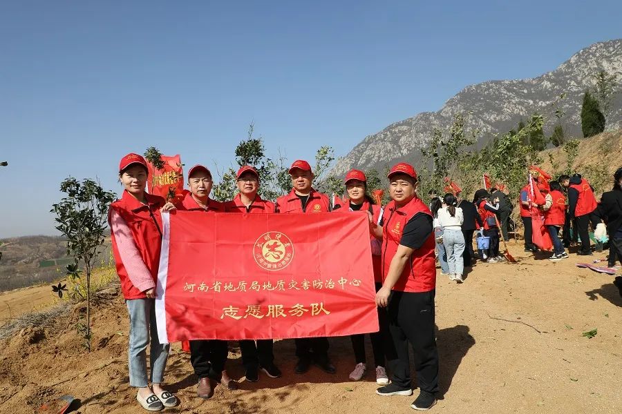 巍巍嵩山,荫荫绿植,抹抹地质红,自成一派怡人风景。在植树现场,中心志愿者们分工协作、相互配合,挥锹铲土、扶树正苗、培土压实、浇水灌溉,每个环节都一丝不苟、认真细致。大家干劲十足、热情忙碌,以实际行动为践行绿色发展理念和推进生态文明建设贡献力量。