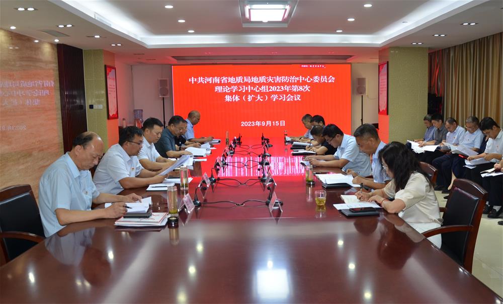 9月15日,地质灾害防治中心党委召开理论学习中心组2023年第8次集体(扩大)学习会议,传达学习局属单位领导干部会议精神和局党组书记、局长石迎军在三大中心讲授专题党课精神,研究布置贯彻落实工作。中心主任韩国童和其他领导参会,党委书记吴青松主持。