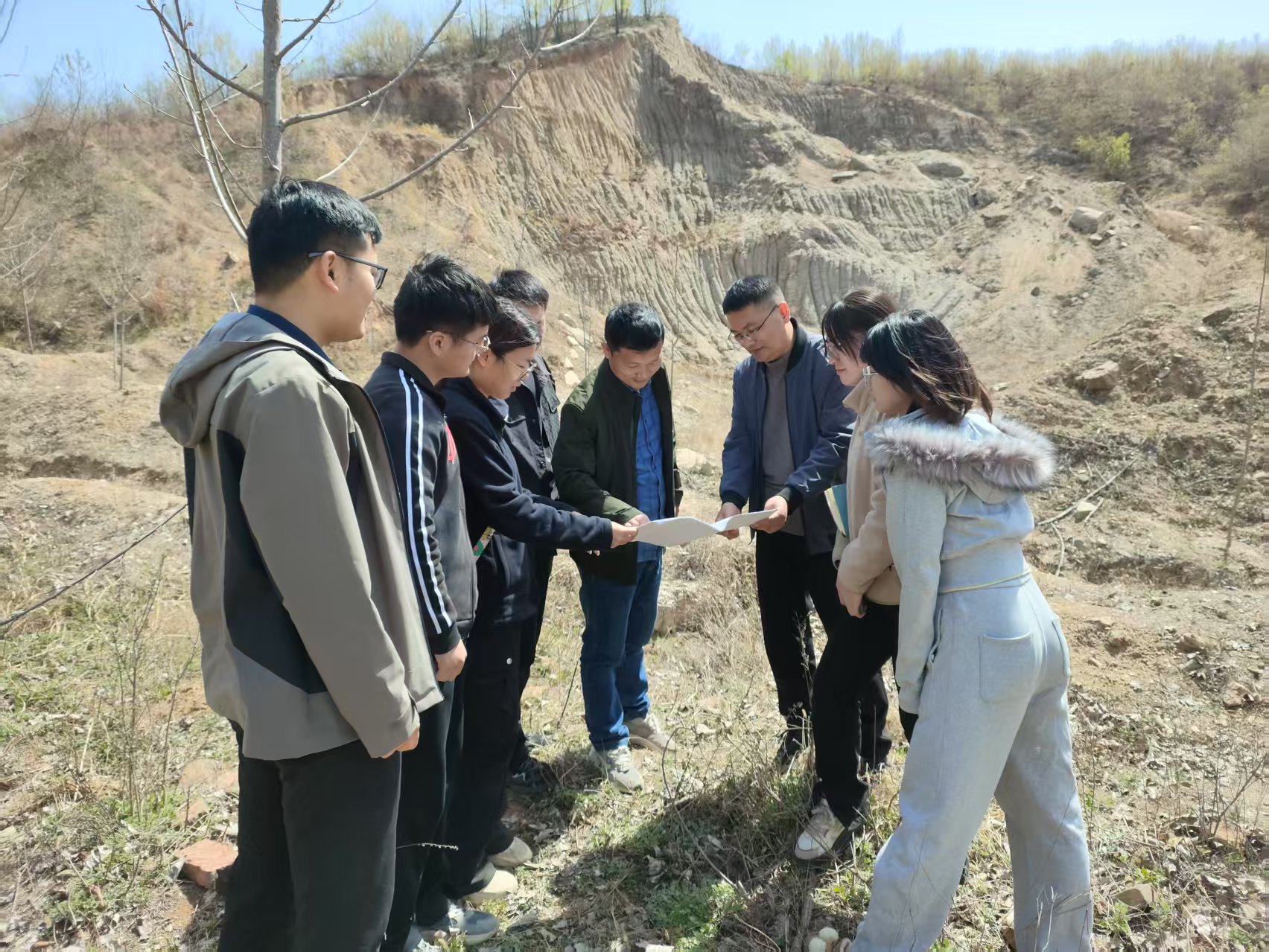 在漆树沟尾矿砂处置后生态修复勘测设计工作中,突击队党员技术骨干勇挑重担。针对尾矿砂土壤贫瘠、易流失的痛点,他们克服野外艰苦环境,实地踏勘3.5km2;积极研讨,因地制宜制定修复方案,为后续修复工程奠定坚实基础。