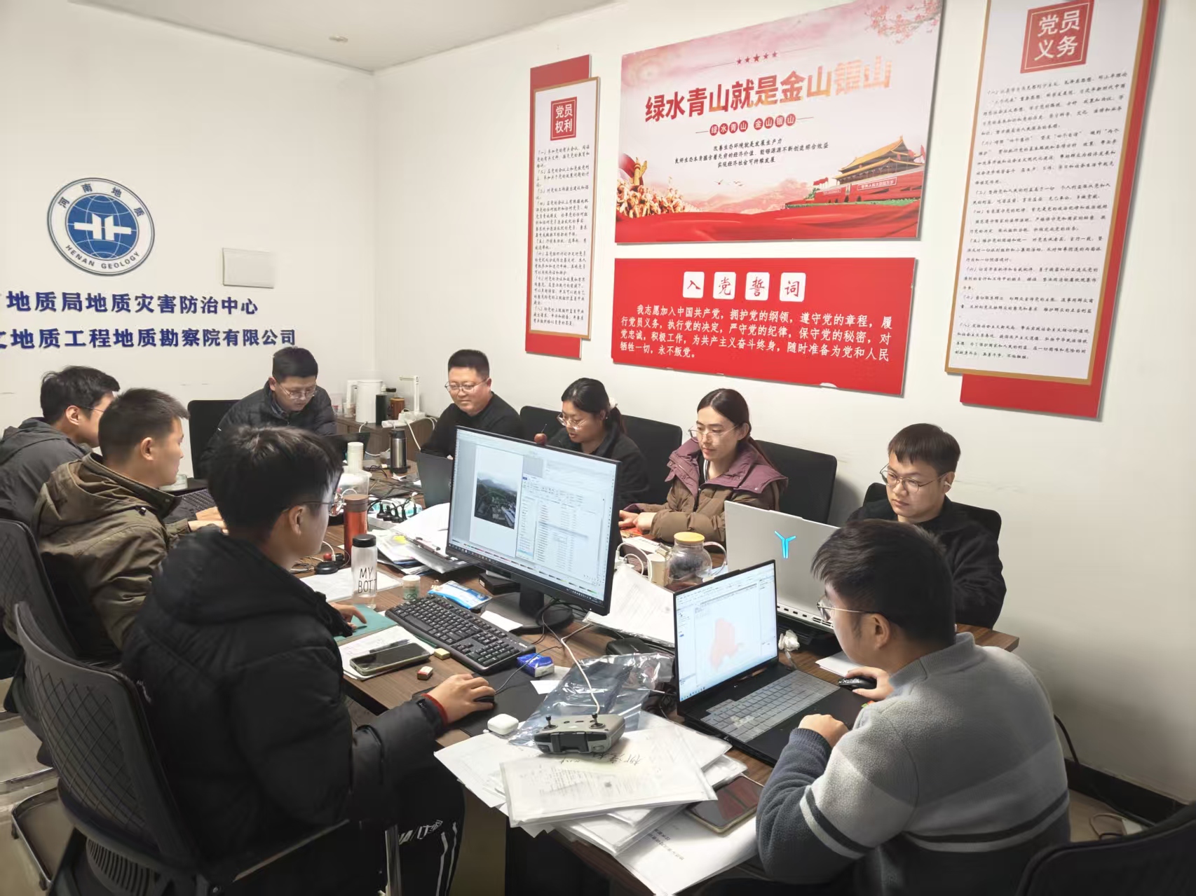 “方城项目党员突击队”由地质灾害调查三所党支部党员骨干组成,突击队聚焦部门所承担的3项重点项目,以“党建红”引领“生态绿、安全蓝”,在方城大地上书写了地质党员的责任与担当。